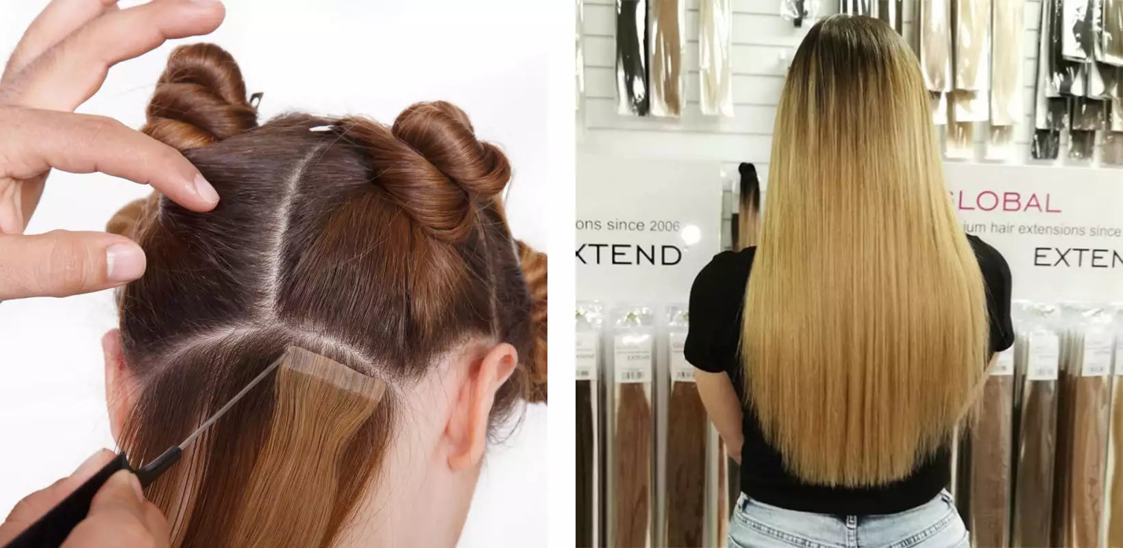 Einarbeiten 40 Tape-Extensions (20 doppelte) = € 196,-