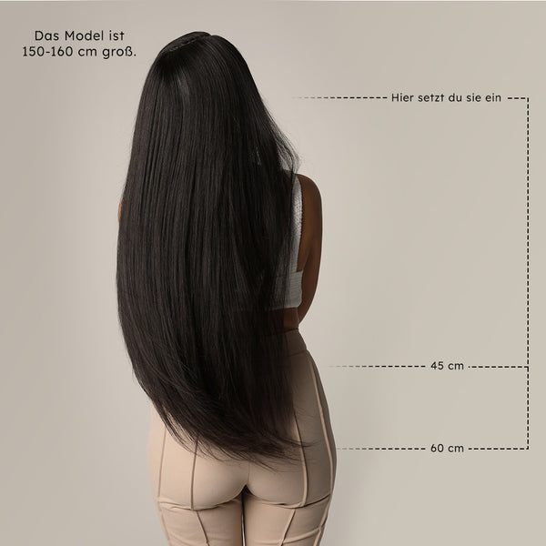 Die Haartresse ist in 45 und 60 cm erhältlich und jeweils 80 cm breit.